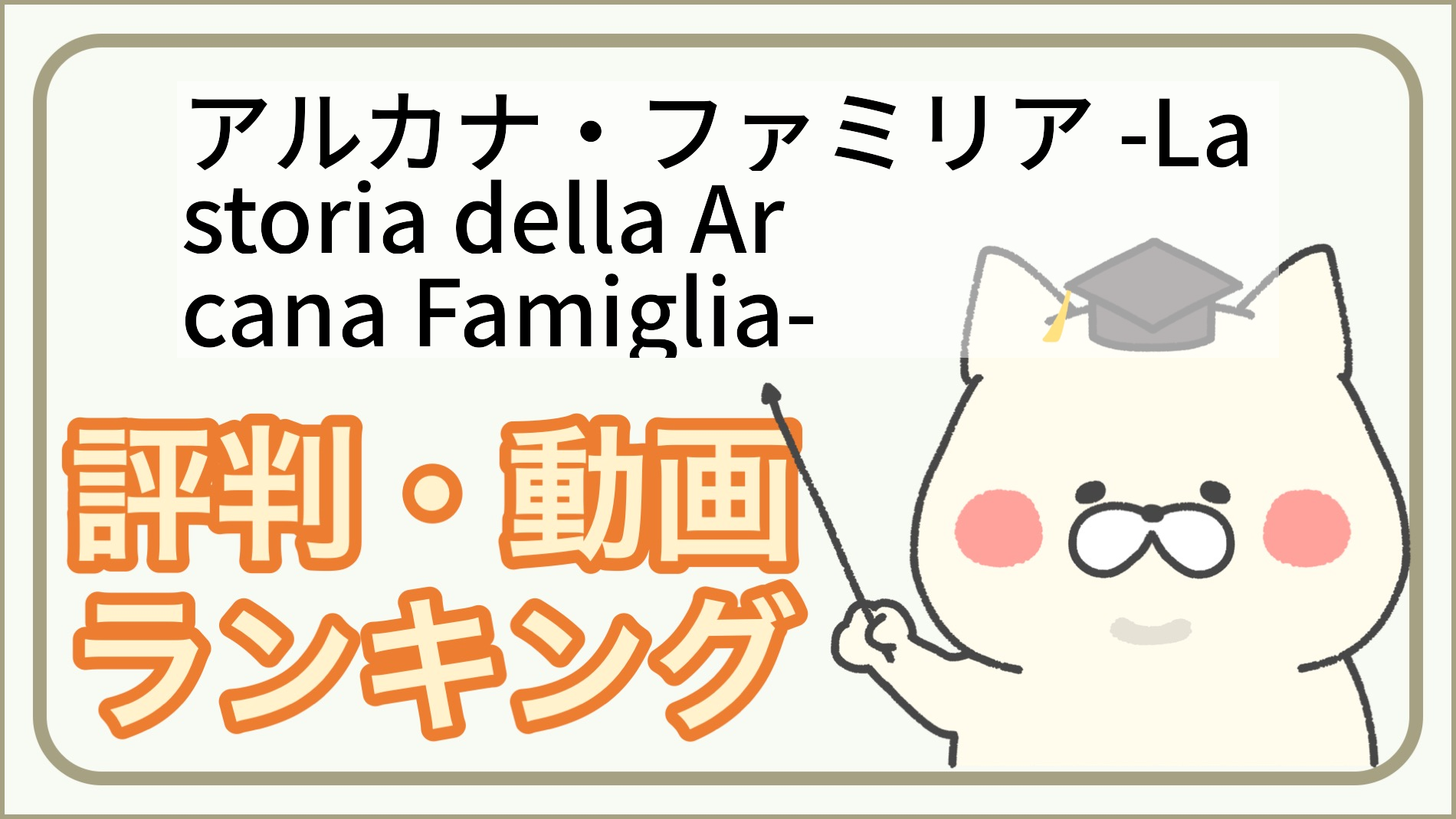 アルカナ・ファミリア -La storia della Arcana Famiglia-は面白い?ひどい?評価・人気ランキング[次に見るべきアニメは?]
