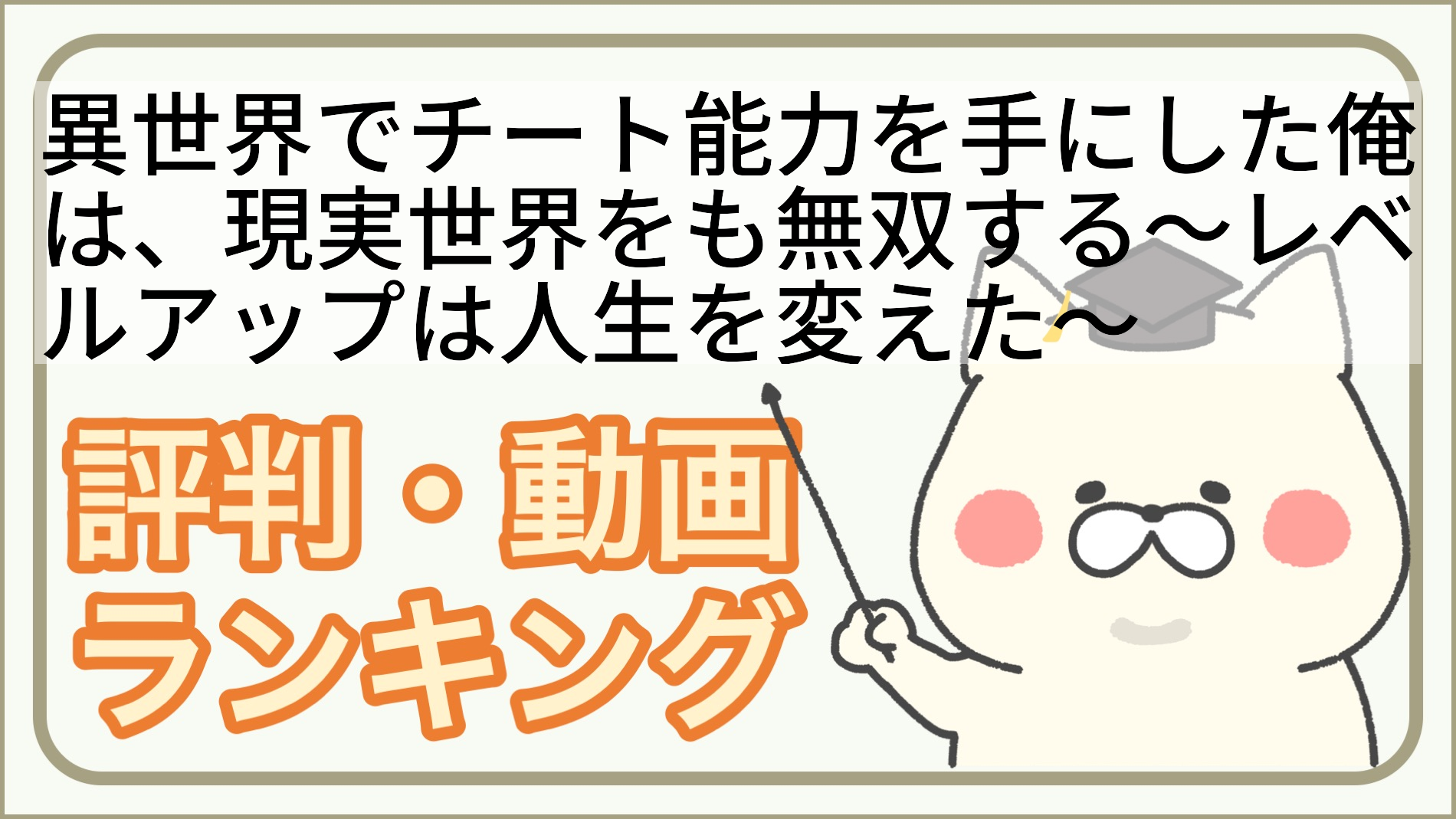 異世界でチート能力を手にした俺は、現実世界をも無双する〜レベルアップは人生を変えた〜は面白い?ひどい?みんなの評価・人気ランキング[次に見るべきアニメは?]
