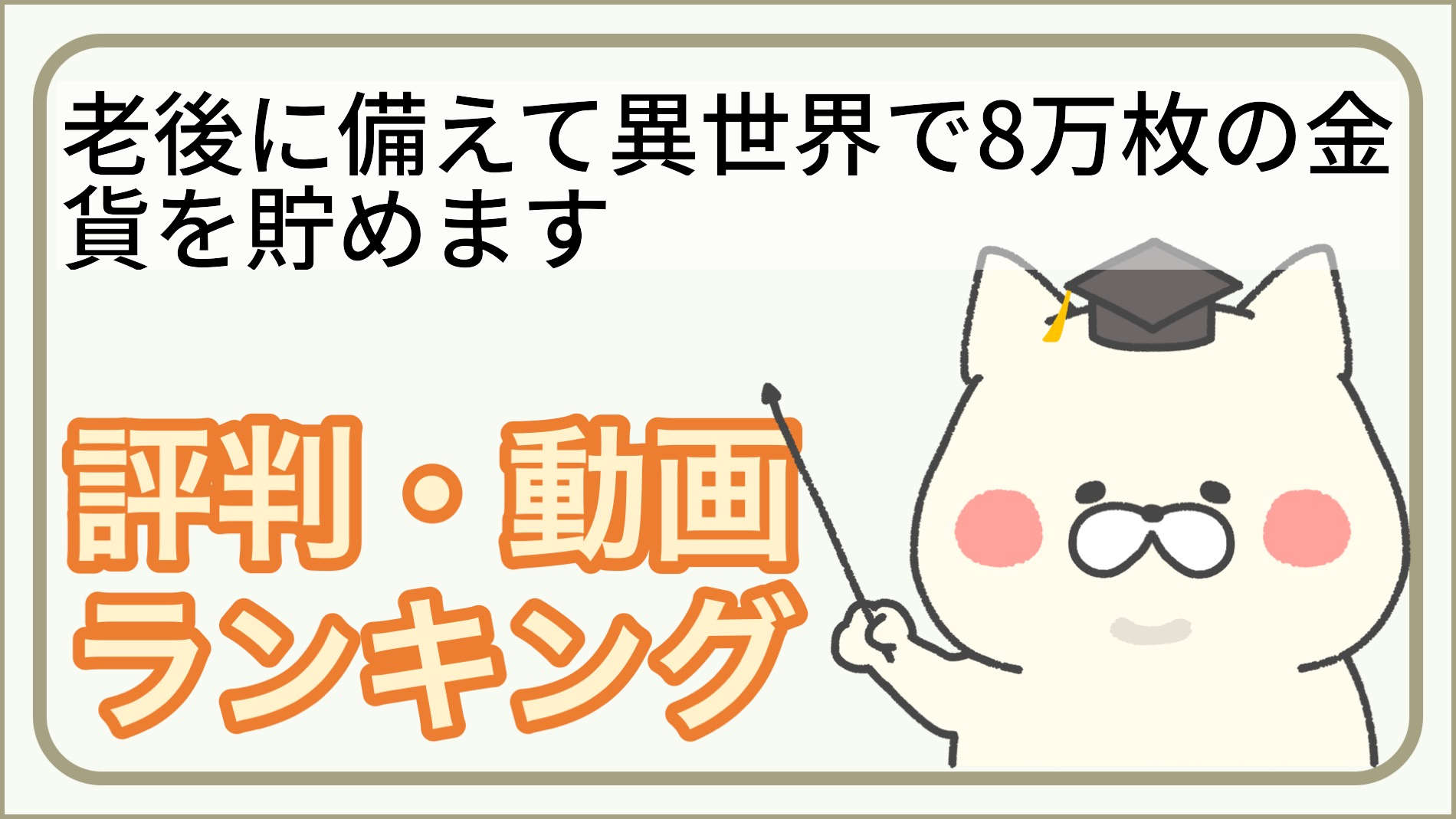 老後に備えて異世界で8万枚の金貨を貯めますは面白い?ひどい?評価・人気ランキング[次に見るべきアニメは?]